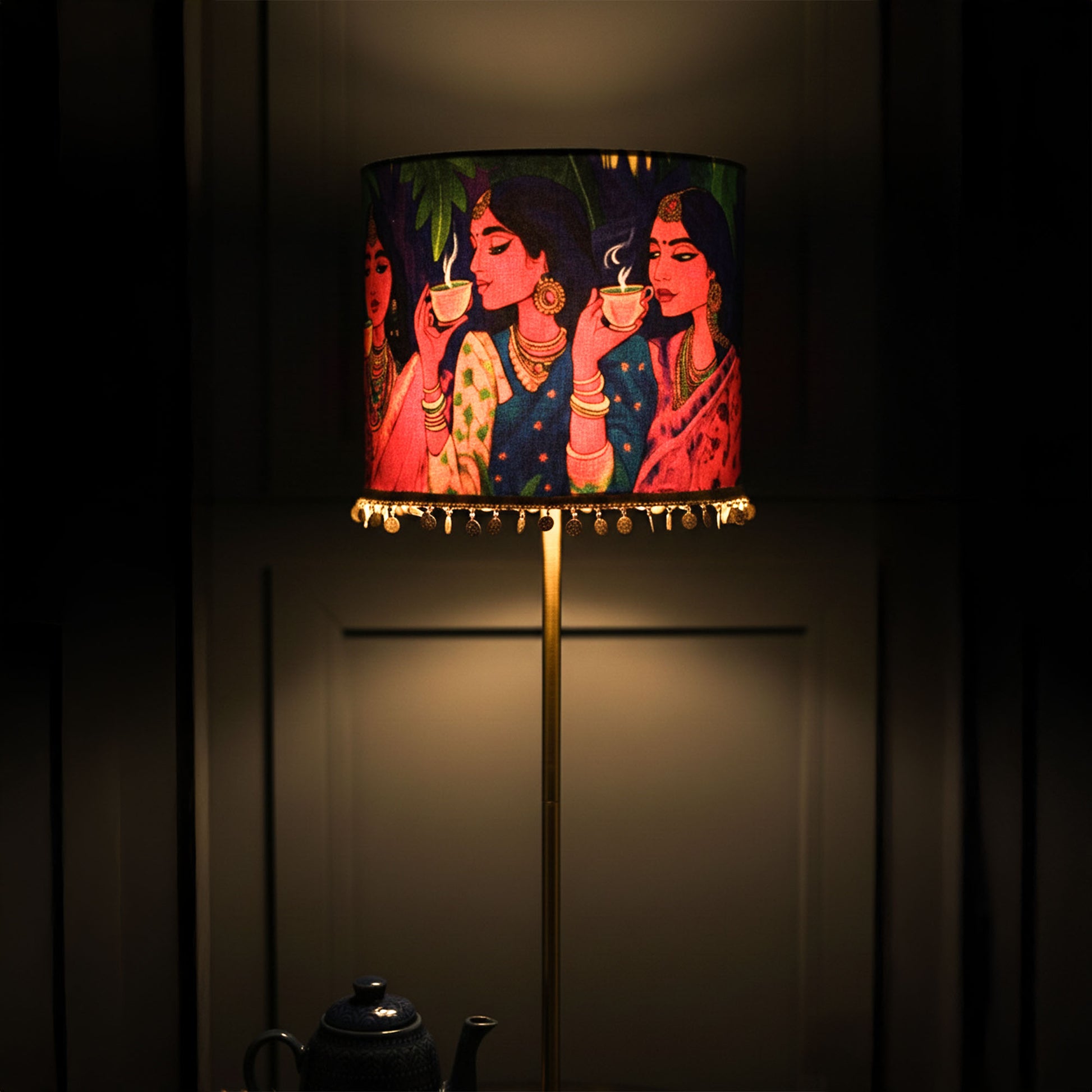 Design Inspiration: Inspired by Indian heritage, this lamp features a graceful lady in a sari enjoying tea, adorned with intricate jewelry. Finished with golden danglers, it brings a touch of tradition and storytelling into modern spaces.