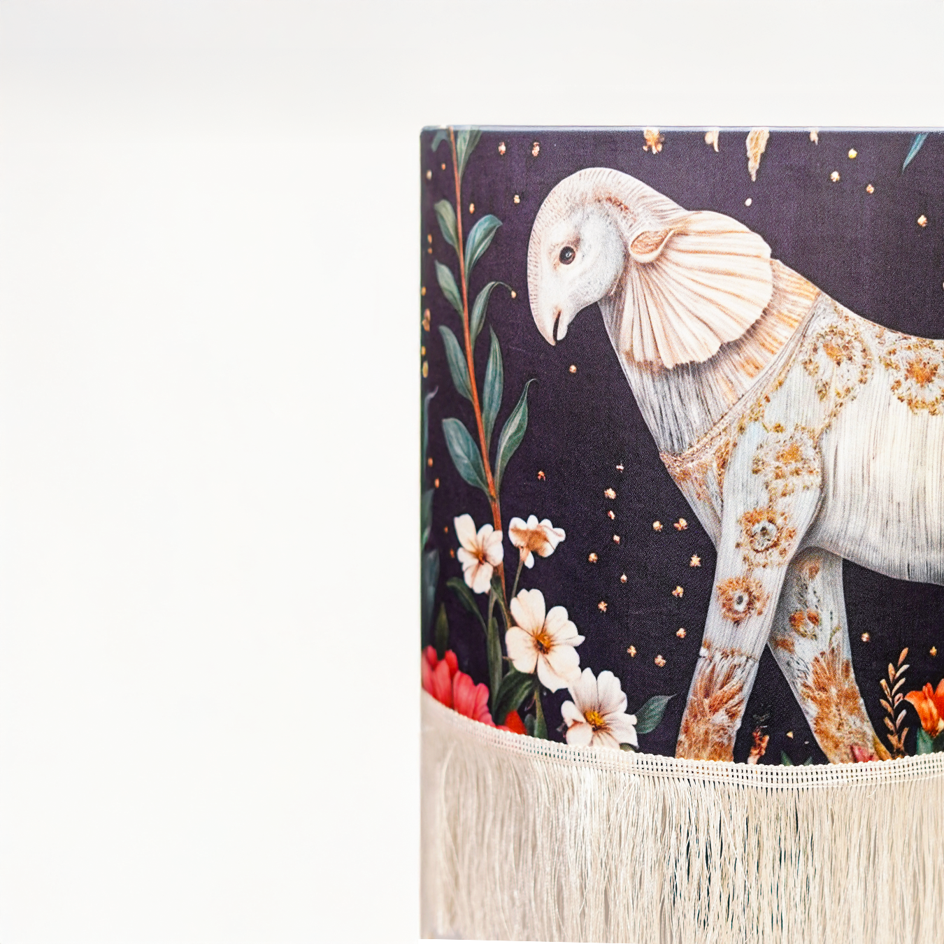 Design Inspiration: Symbol of strength and royalty, this design features a beautifully adorned elephant walking through a floral landscape. Finished with soft white fringes, it blends luxury with heritage.